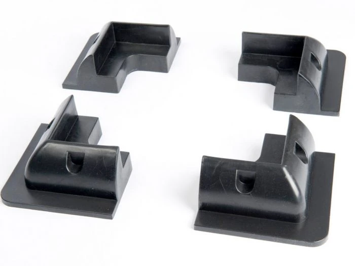 Lot de quatre coins de fixation en matière synthétique pour la fixation d’un panneau solaire. Lot de 4 pièces.