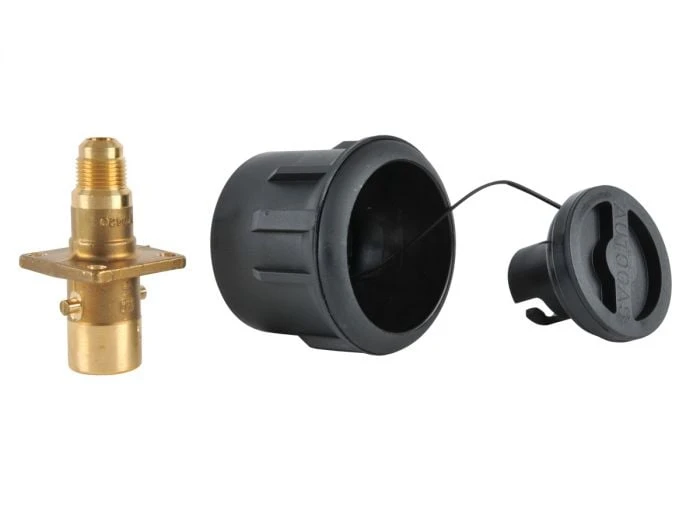 La boîte de remplissage avec vanne de remplissage droite est un ensemble d’un pot de remplissage encastré avec bouchon de fermeture. Cette boîte de remplissage est équipée d’un remplissage externe à baïonnette avec un raccord droit pour le branchement du tuyau de remplissage.