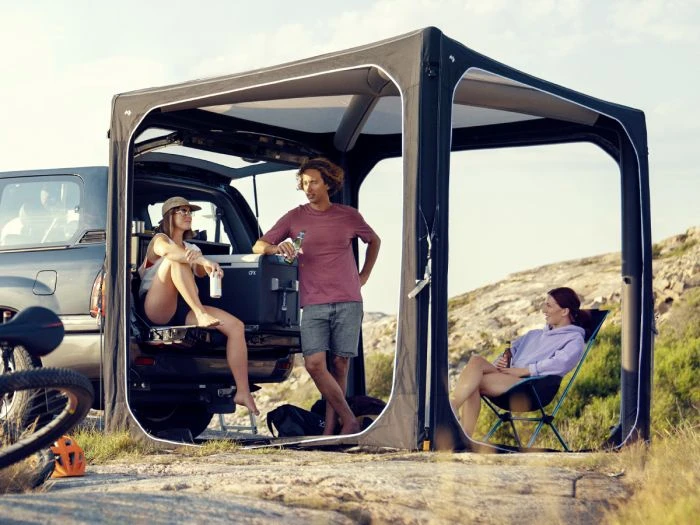 Le HUB 1.0 est également parfait à utiliser comme tente hayon pour votre voiture, SUV ou fourgon. Le rabat de connexion permet d’assurer une bonne connexion au véhicule. Grâce aux nombreuses possibilités, le Dometic HUB 1.0 est une tente indispensable pour les vrais passionnés de camping.