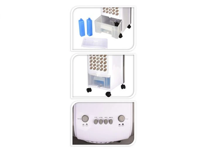 Il est agréable de pouvoir se rafraîchir pendant les journées chaudes d’été, n’est-ce pas ? Ce refroidisseur d’air vous permet de rafraîchir la pièce en utilisant de l’eau. Ce refroidisseur d’air refroidit l’air en le soufflant à travers de l’eau (froide). Plus l’eau est froide, plus l’air est frais ! Pour rendre l’eau plus froide, vous pouvez mettre des éléments de refroidissement supplémentaires dans l’eau. Le grand avantage d’un refroidisseur d’air est qu’il n’est pas nécessaire de placer un tuyau vers l’extérieur comme c’est le cas avec un climatiseur.