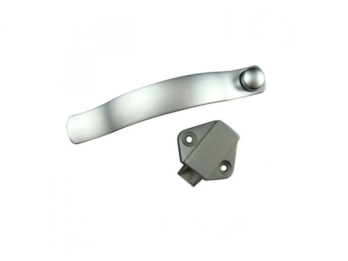 La poignée est en matière synthétique et a une fermeture à loquet. Elle mesure 92 mm et a une forme allongée.