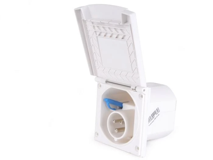 Le socle à encastrer CEE avec couvercle amélioré peut être utilisé pour brancher une tension de 230 volts sur une caravane, un camping-car ou un bateau. Ce socle à encastrer est pourvu d’un couvercle verrouillable, ainsi la prise est fermée par vent par mauvais temps.