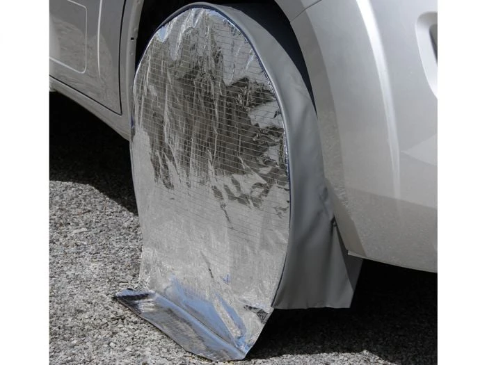 La housse pneu est unique grâce à sa surface réfléchissante à l’avant. Cela empêche les rayons UV d’endommager les roues. Étant donné que votre roue n’est plus exposée à la chaleur, la vitesse de vieillissement des pneus diminue, ce qui vous permet de rouler plus longtemps avec les mêmes pneus.