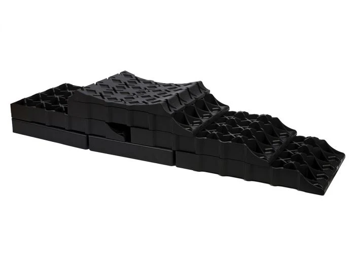 Milenco Stacka Level est composé de 6 plaques de niveau de 4,8 cm de hauteur qui peuvent être utilisées individuellement ou ensemble pour atteindre la hauteur souhaitée. La dernière plaque est formée au pneu, ce qui empêche d’une part le véhicule de glisser et d’autre part toute déformation du pneu. Le Stacka Level 6 est livré avec un sac de rangement pratique.