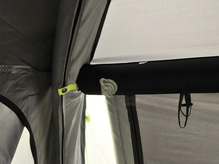 Les tubes pneumatiques assurent une construction stable. Les tubes pneumatiques sont munis d’un enveloppage très résistant, de sorte qu’il est presque impossible de les endommager. Le grand avantage des tubes pneumatiques est qu’ils bougent avec le vent et reviennent toujours à leur forme d’origine. Cela permet d’éviter les dégâts et vous n’avez pas d’arceaux de tente tordus ou cassés. Pour plus de stabilité, l’Ibiza est équipé de deux barres de toit gonflables.