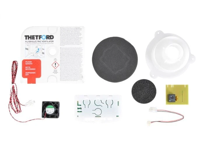Le kit de ventilation Thetford Electric filtre automatiquement les odeurs du réservoir à matières vers l’extérieur du véhicule.